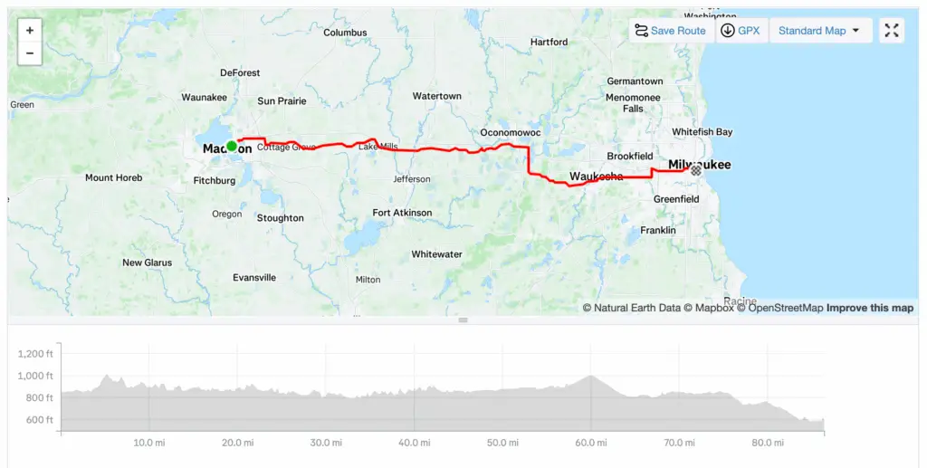 We broke our rest day fast by riding just over 86 miles from Madison to Milwaukee today. In some ways it’s hard to get back on the bike, but in some ways it’s a relief to continue. The first few miles tend to require a little shake out of the legs. Our bikes were tended to by the Trek technicians over the last 24 hours and we found clean and fresh tires and frames upon starting this morning. Sometimes it’s the little things – like the new blinged up name tags on the bikes. Mine had been coming off for some time and was catching on my right leg. Marty, one of the guides, had taped it down at some point – but when I returned from dinner last night and my bike was in my room so I could charge my power pedal – I saw that there was a new sticker with my name further up towards the handle bars so as to not interfere with my pedal stroke. I’m not sure what happened earlier, but I did have bruising on the inside of my right knee at some point from hitting my knee against the frame.
